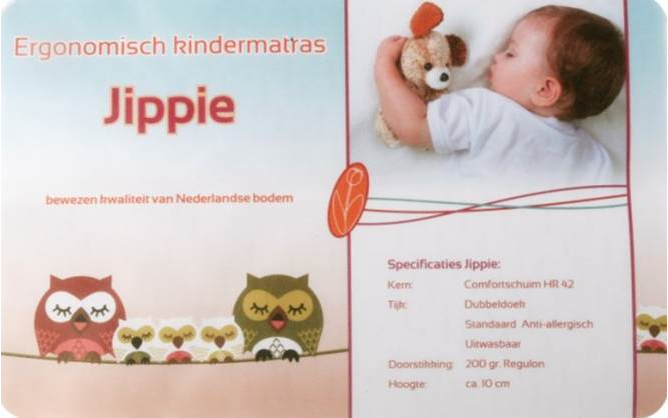 Hoge kwaliteit ledikantmatras 60x120cm van het merk Jippie. De ledikantmatras is standaard anti allergisch en heeft een afritsbare hoes die uitwasbaar is.